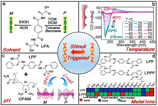 图二、通过不同外常刺激的调控超分子手性结构的示意图