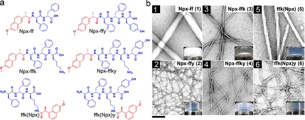 (a)由d-氨基酸(蓝色)和甲氧萘丙酸(NPX,红色)组成的凝胶基元化学结构;