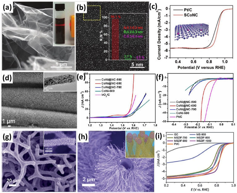 图14 MOF涂层衍生物应用于电催化的典型实例