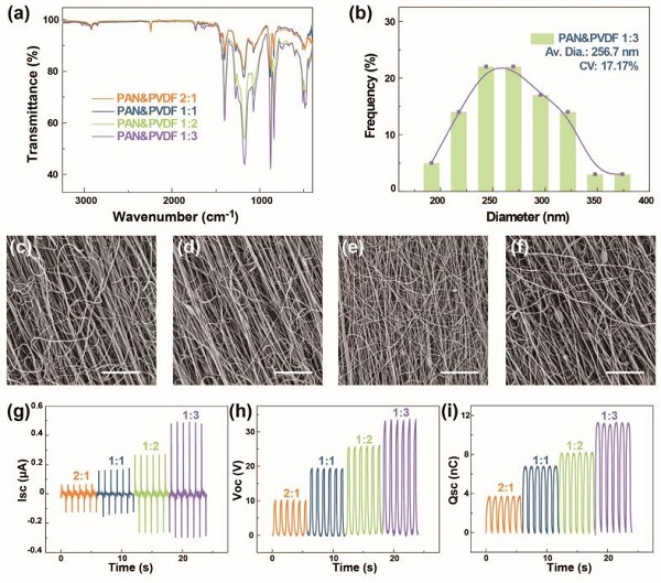 (b)PAN&PVDF=1: 3纳米纤维织物的平均纤维直径;