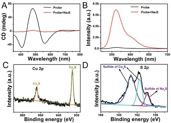 (A)纳米探针对不同的Na2S(H2S的供体)有响应的CD光谱;
