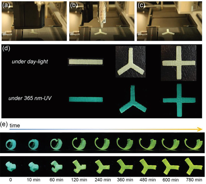 7. Advanced Materials :受生物启发的水凝胶的荧光颜色,亮度和形状的同时变化