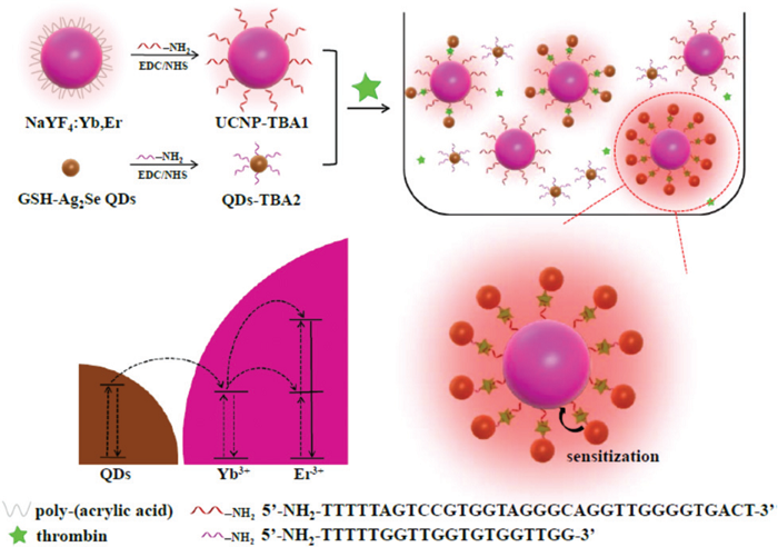图十:基于Ag2Se量子点对UCL的增强调节用于凝血酶检测的示意图