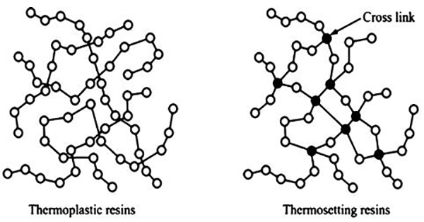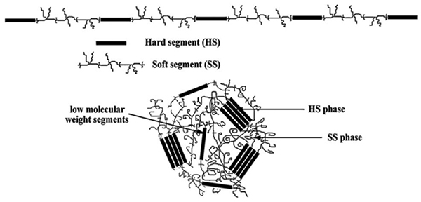 图十三、热塑性聚氨酯和热固性聚氨酯聚合物链结构差异的示意图