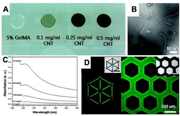 图十五、可用于形成纳米复合水凝胶的不同类型纳米材料的示意图图十六、CNT/GelMA的3D打印