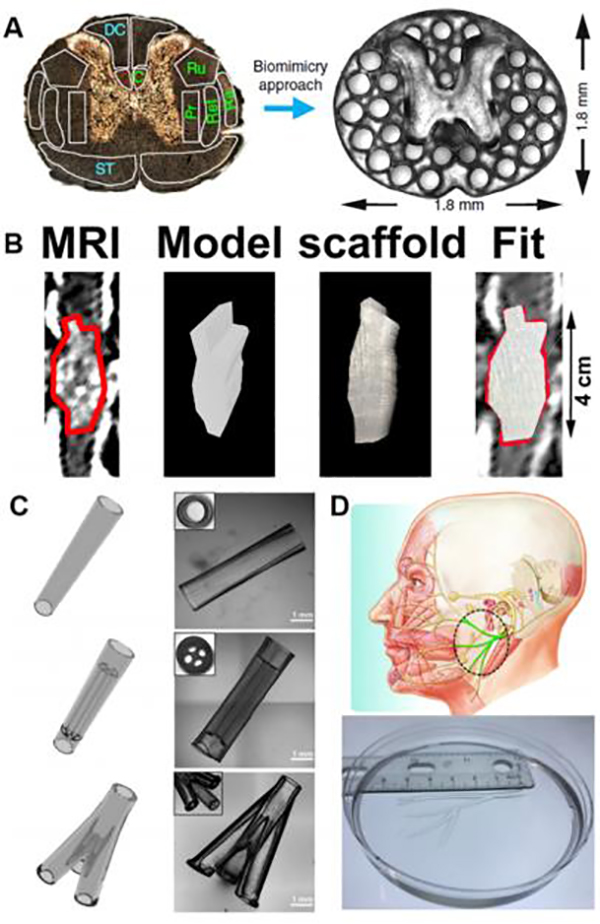 (B)基于人体脊髓损伤MRI的3D打印脊髓支架;
