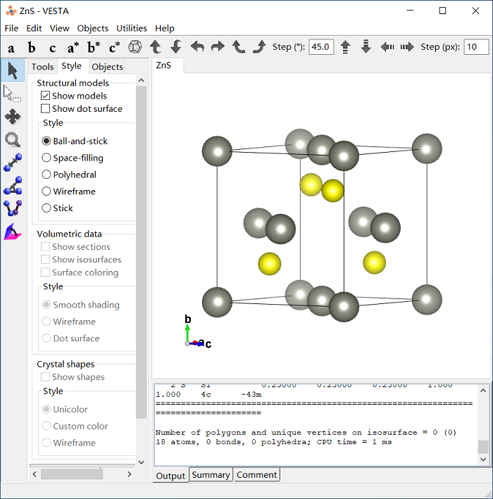 如图11所示,在文本区域单击“Summary”即可看到晶体结构的基本信息。