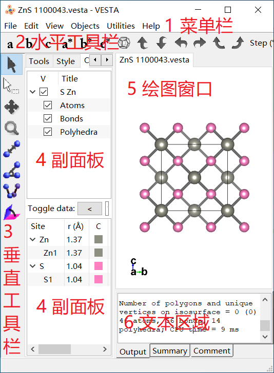 VESTA界面比较简洁(如图3),主要由以下几个部分组成: