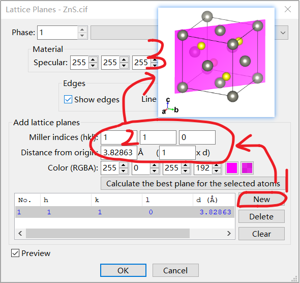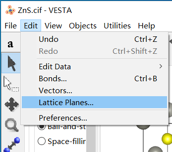 首先通过“Edit”→“Lattice Planes”打开编辑晶面的界面(图41),然后按照如图42所示,通过新建晶面来显示晶面。