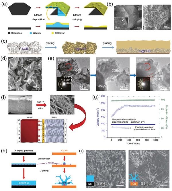 (a)石墨烯薄片上Li沉积/剥离过程的示意图;