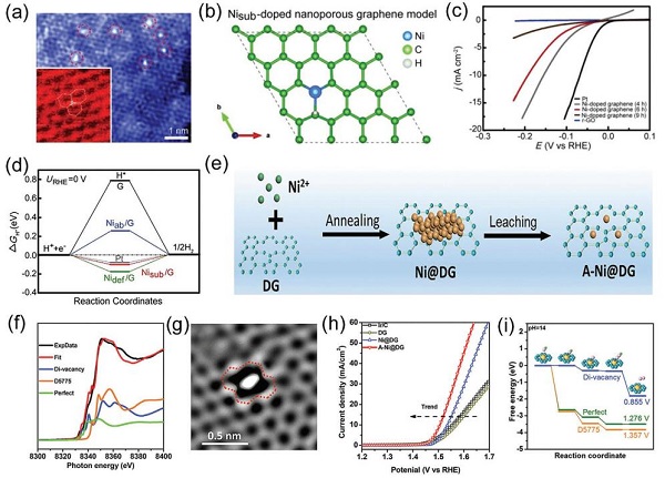 (g)A-Ni@DG双空位原子分辨率的HAADF-STEM图;