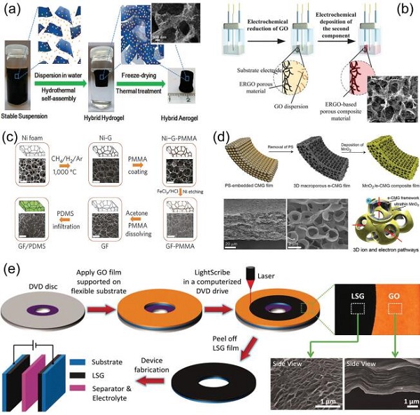 (b)三维石墨烯(ERGO)基复合材料的制备方法示意图;