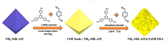 NH2-MIL-125@TAPB-PDA杂化的合成工艺示意图