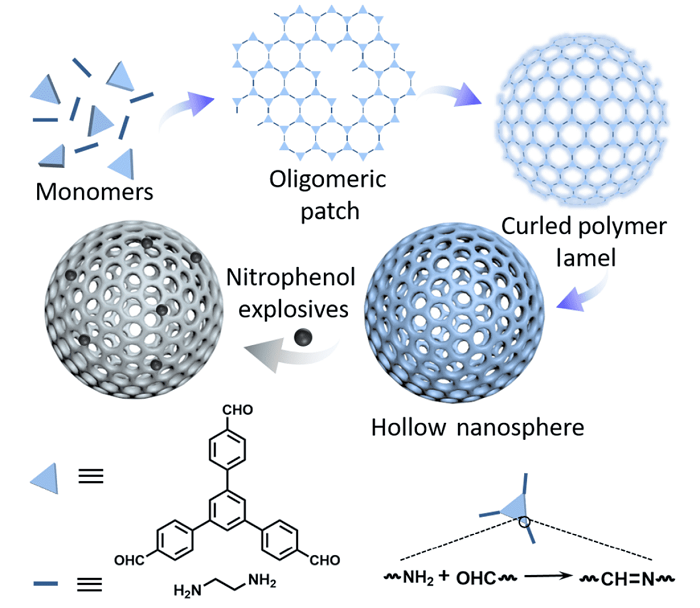 利用AIE活性单元构建的共价有机空心纳米球用于硝基酚类爆炸物的检测