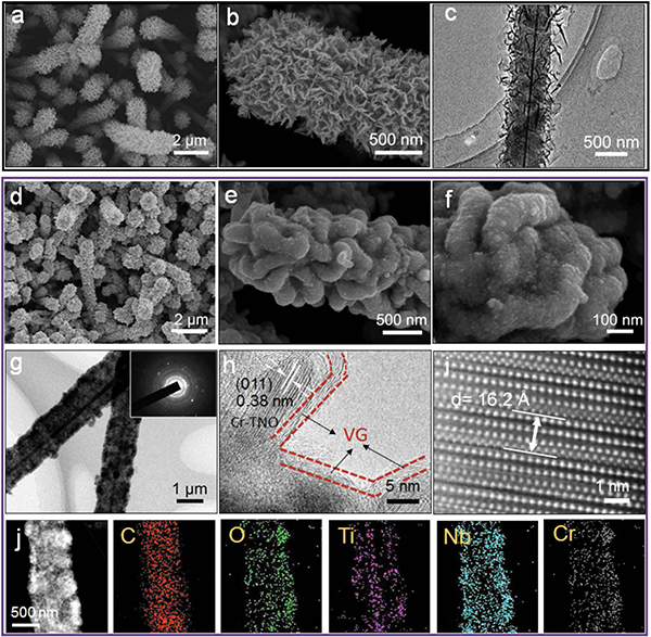 图一Cr-TNO @ VGTC阵列的形貌和结构表征