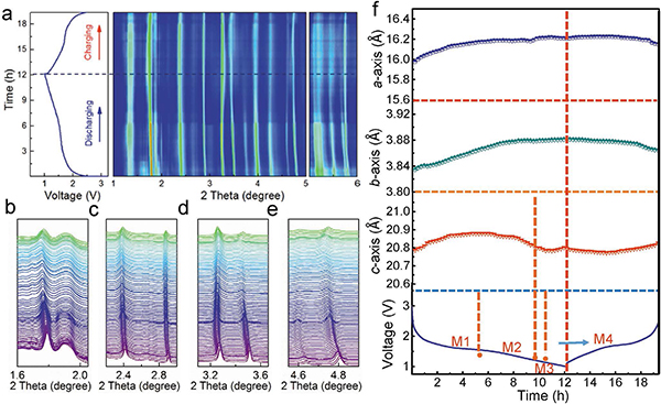 (a)Cr-TNO样品的原位XRD谱图和相应的电压曲线。