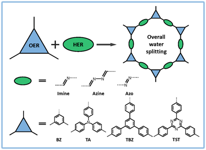 中国科学技术大学武晓君教授和杨金龙院士合作基于拓扑方法和第一性原理计算,设计了十二个具有优异的可见光催化水裂解性能的二维COF材料。通过组装对HER或OER具有催化活性的特定连接键和结构单元,可以构建具有1.92至3.23 eV可调带隙的二维半导体和多孔COF。它们的结构稳定性已通过BOMD仿真得到证实。研究人员进一步验证了I-TST对HER和OER的光催化能力。该工作不仅实现了用于水分解的二维COF材料光催化剂的计算设计和实验实现,而且为设计实用的二维COF材料作为无金属和单一材料的光催化剂提供了一条途径,用于在功能分子可见光下进行全水分解。