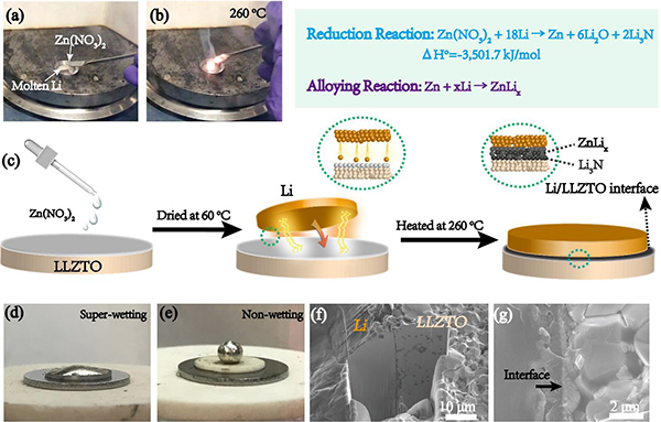 (c)固态ZNR Li/LLZTO界面的制备过程示意图。
