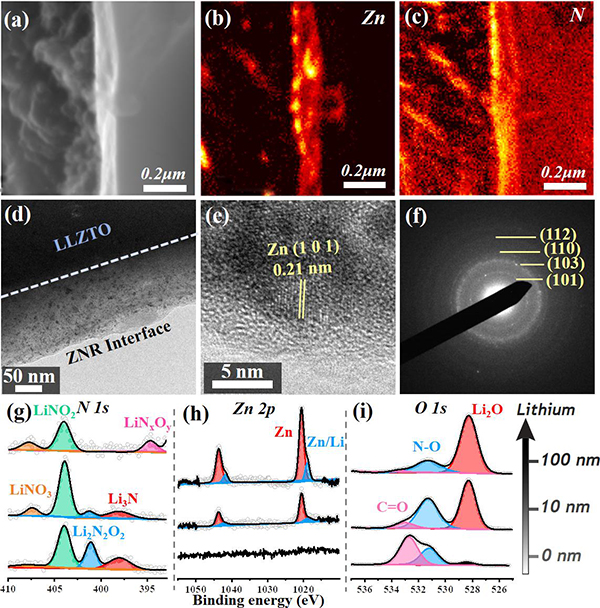 (a-c)ZNR界面层的SEM图像以及Zn和N 的AES映射,