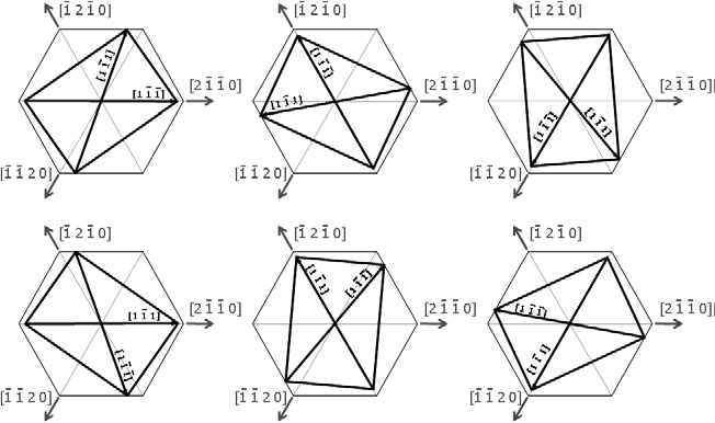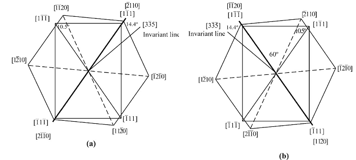 图6 不同的<11-20>α与两个不同的<1-11>β的两个相邻β晶粒的精确匹配,相邻的β晶粒沿[110]β旋转约10.5°[6]
