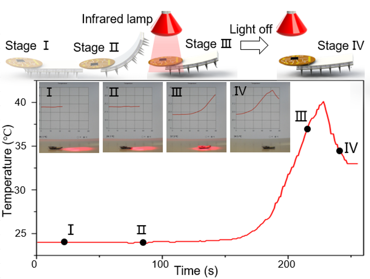 杨媛媛补充说:“除了其自身具有的探针感知能力之外,这种微型软体机器人还能携带不同类型的传感器探测周围的环境。例如,当这种携带有温度传感器的微型软体机器人经过红外线照射的不同区域时,其温度变化产生的电信号能通过NFC无线传输到电脑端 (如图7所示)。”