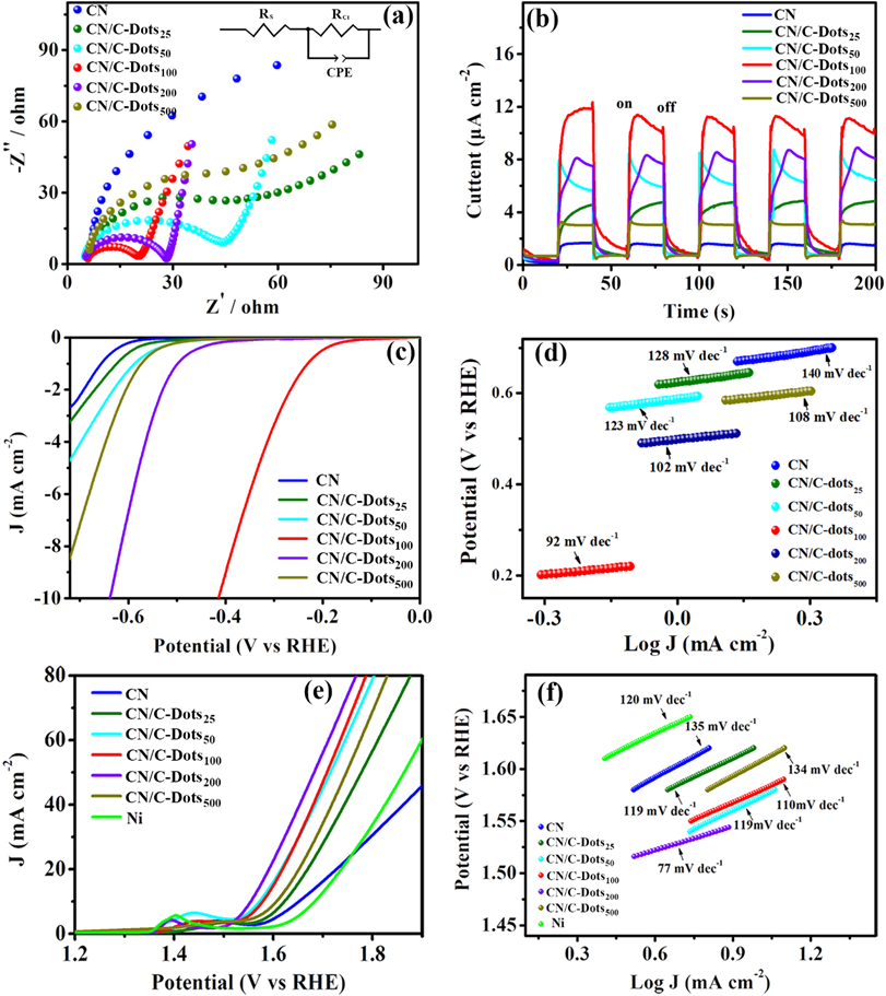 图8. CN和CN/C-Dots LHSs的电催化性能测试。