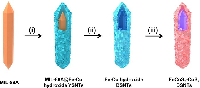 图一:FeCoS2-CoS2双壳纳米管合成示意图