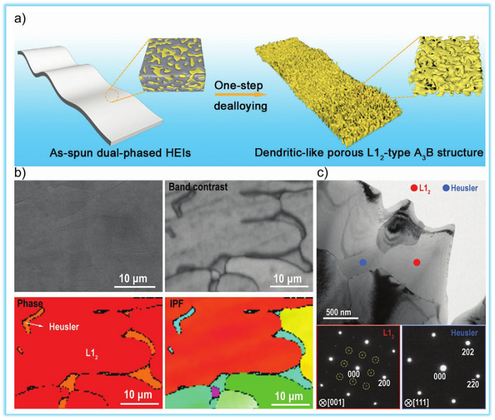香港城市大学刘锦川院士和吕坚院士等人在多元高熵和位点隔离概念的指导下,开发出具有FeCoNiAlTi成分的非贵重高熵金属间化合物,作为基于Pt的HER电催化剂的潜在低成本和环保替代品。具有树突状表面形态的L12型HEI在碱性条件下显示出优异的HER性能,这归因于化学协同作用和结构位点隔离效应相结合对电子结构的微调。所提出的合金设计策略为通过采用低成本3d过渡金属形成HEI来定制电化学性能提供了极大的可能性,该方法也广泛适用于其他非均相催化剂体系。预期目前的结果将为新一代HEI的开发打开大门,提供了开发具有优异反应活性的新型电催化剂的新思路。