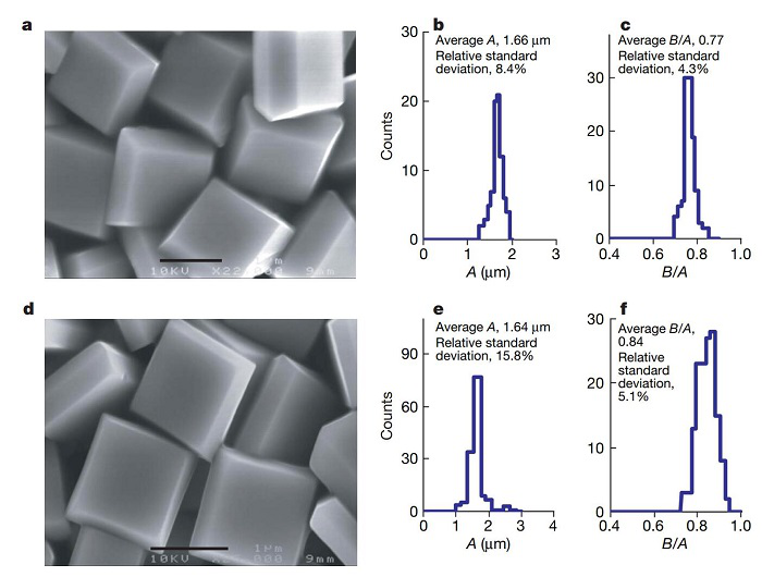 图4:锐钛矿单晶的尺寸和截短度的SEM图和统计数据[3]