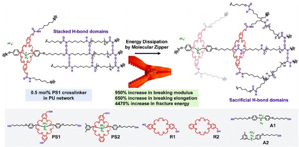 图1.PS1和PS2交联的PU网络的分子拉链机理