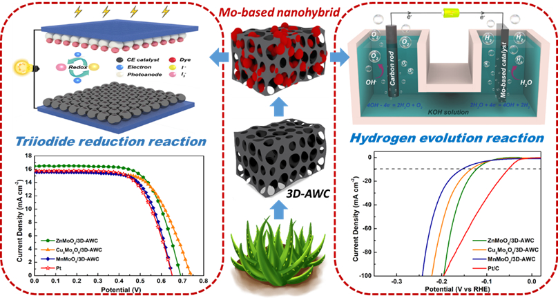 Feng Han, Sining Yun*, Jing Shi, Yongwei Zhang, Yiming Si, Nosheen Zafar, Jingwen Li, Xinying Qiao. Efficient dual-function catalysts for triiodide reduction reaction and hydrogen evolution reaction using unique 3D network aloe waste-derived carbon-supported molybdenum-based bimetallic oxide nanohybrids. Applied Catalysis B: Environmental, 2020, 273, 119004, DOI: 10.1016/j.apcatb.2020.119004