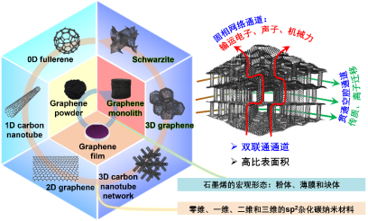 多种维度的sp2杂化碳纳米材料:0D富勒烯、1D碳管、2D石墨烯、3D碳管网络、3D石墨烯、 Schwarzite结构