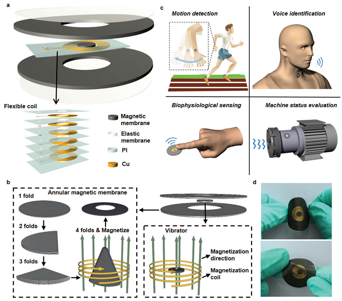 AFM:环形磁场结构折纸式磁膜用于全柔性电磁振动传感器