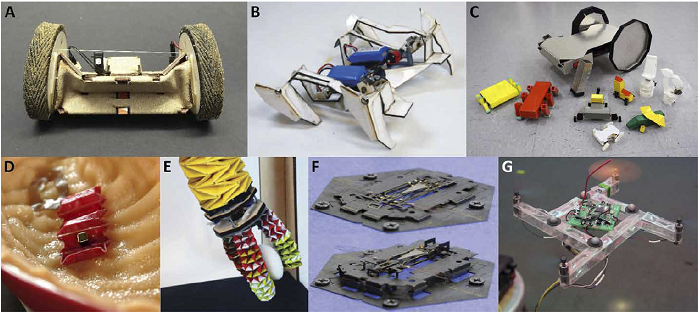 1)今天,机器人是我们工业和家庭环境的合作伙伴,和我们并肩工作在装配厂、手术室、和家庭中。他们修剪草坪,吸收地板灰层,甚至还可以挤牛奶。最重要的,如果我们能解决一个挑战,他们可能在我们生活中扮演更加重要的角色。机器人包括身体和大脑,但很少有人能同时做到这两点:身体和大脑编码。许多开源工具可以帮助编码,但很少帮助制造机器人。折纸机器人可能会填补这一空白,将材料和机器人连接的更近,重新定义如何制造和使用机器人。折纸机器人的结构和功能是由折纸所决定的。它们身体的动态折叠使其具有驱动能力。典型的折纸机器人开始是一个单一的平面,然后折叠成一个复杂的三维形态。下面这篇文章提醒我们聚焦于折纸机器人, 将折纸元素融入到机器人的设计和制造过程中。科研工作者们已经设计了很多的折纸机器人,考虑到折纸创造性的编程能力,折纸机器人应当有更加广阔的前景。该文章以“Spotlight on origami robots”发表在Science Robotic上。[6]