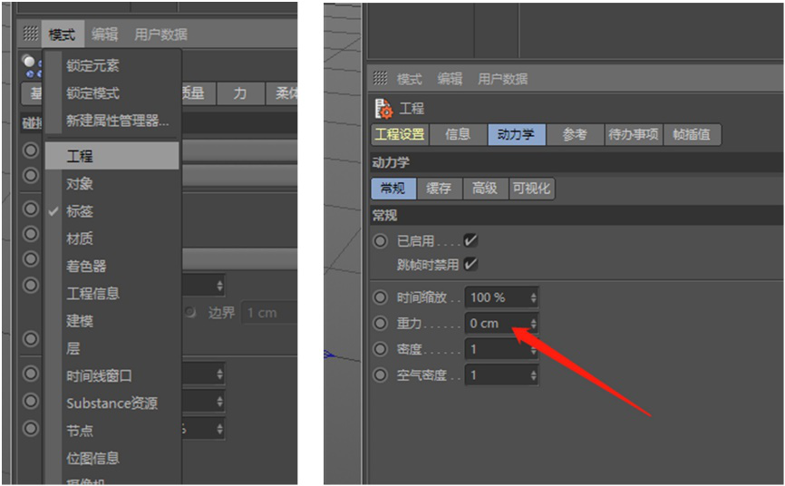 2.5 Ctrl+D进入工程设置,在动力学常规设置中,将重力改为0.
