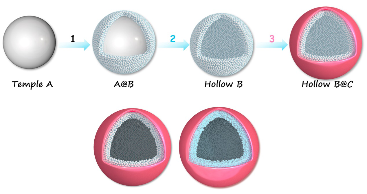 在科研绘图中,三维模型图相对于二维平面图片可以展示更多的信息,尤其是在做纳米结构设计和制备时,三维模型图可以直观地表现出材料的设计思路和合成路径。比如在这篇发表于Joule杂志的高水平、高颜值、将纳米美学展现的淋漓尽致的paper中(Ref. Joule 2018; 2: 725-735.),采用三维模型直观地表达出材料的合成路径。配色和谐,细节丰富:这组三维模型图的一个巧妙之处在于用不规则堆叠的小球来表示SnO2层,代表SnO2是由颗粒状纳米晶堆叠而成的。