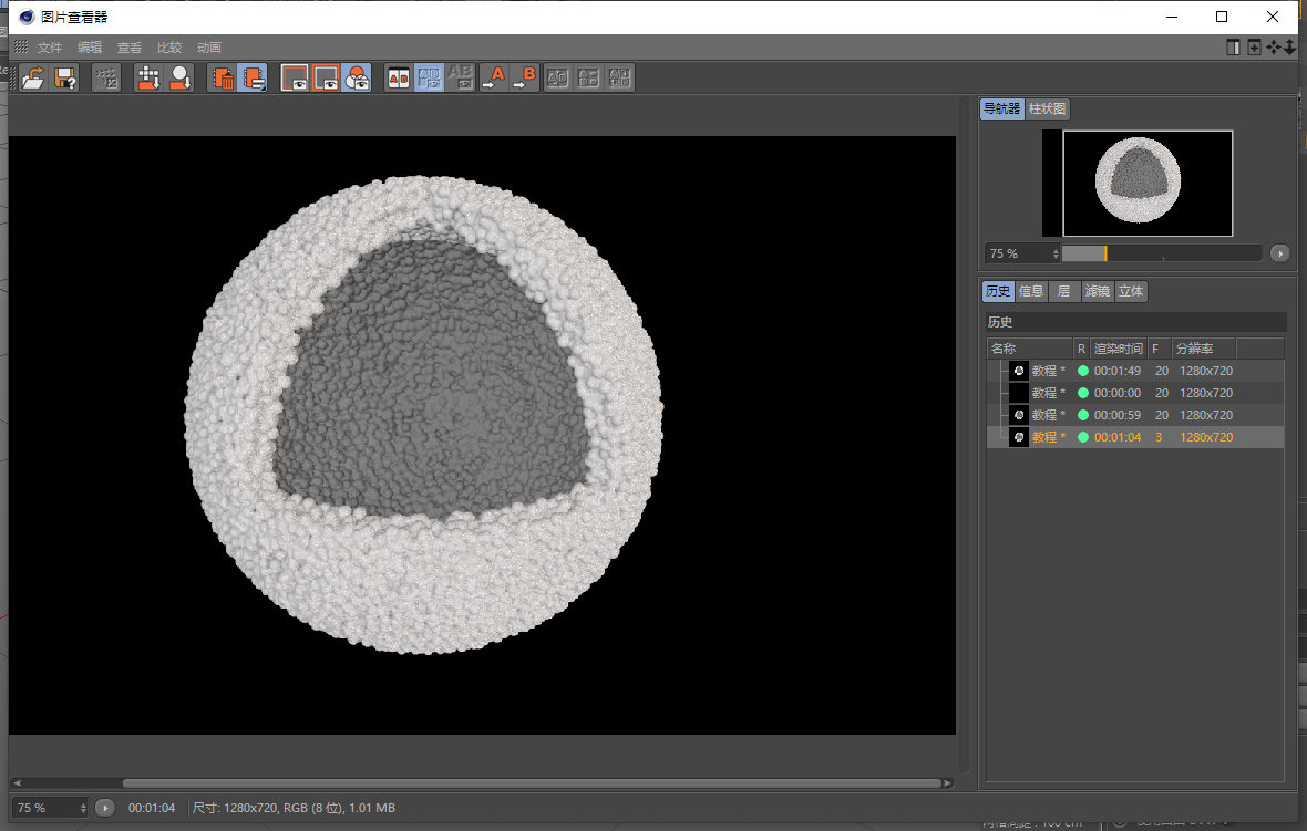 4. 想要在外部增加一层球壳只需要按照第一步中的方法创建切口球壳,调整到合适大小,加上一个细分曲面,并赋予其一个材质就好,材质颜色可自行调节。