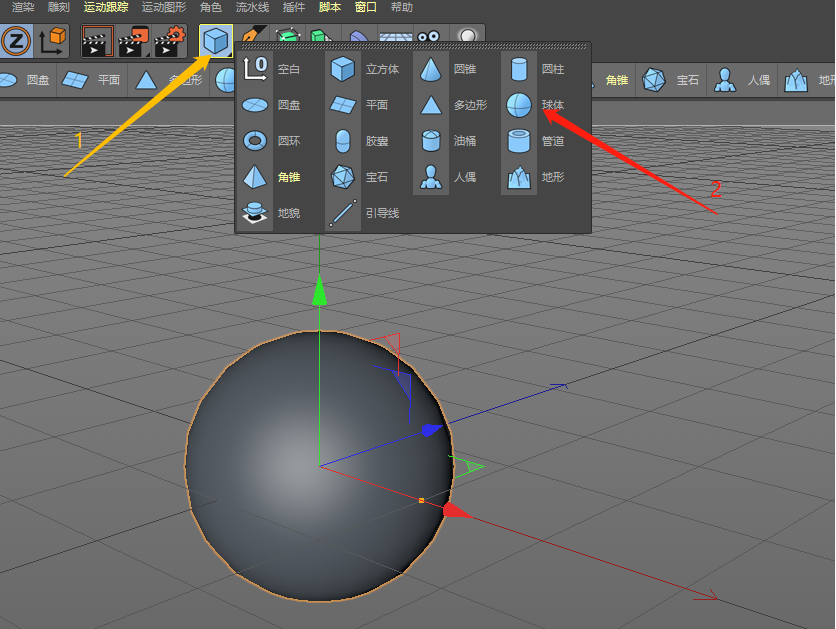 1.1 首先在几何体菜单栏创建一个球体(默认半径100)