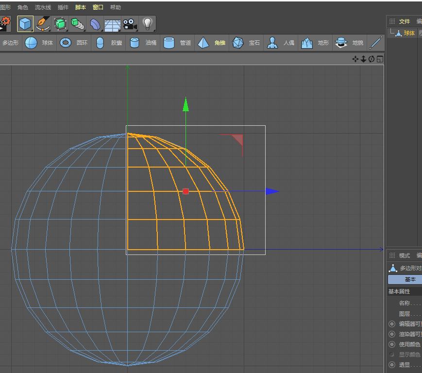 1.4按F3进入右视图,框选球体的四分之一,DELETE键删除