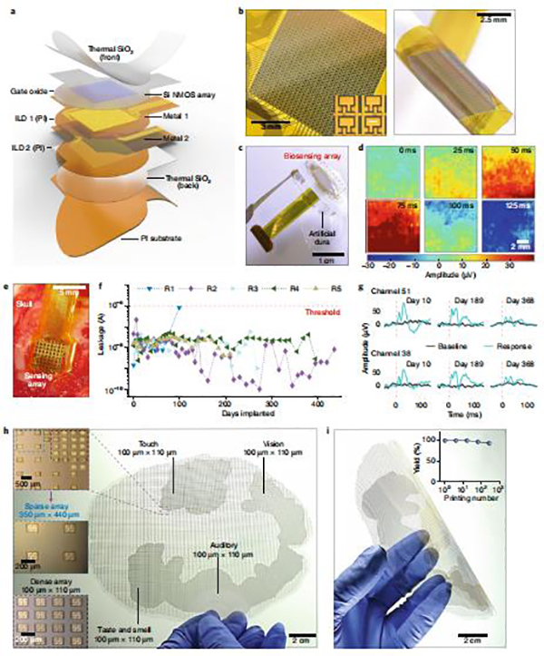 图四、用于长期生物整合的高分辨率/可缩放神经电子系统