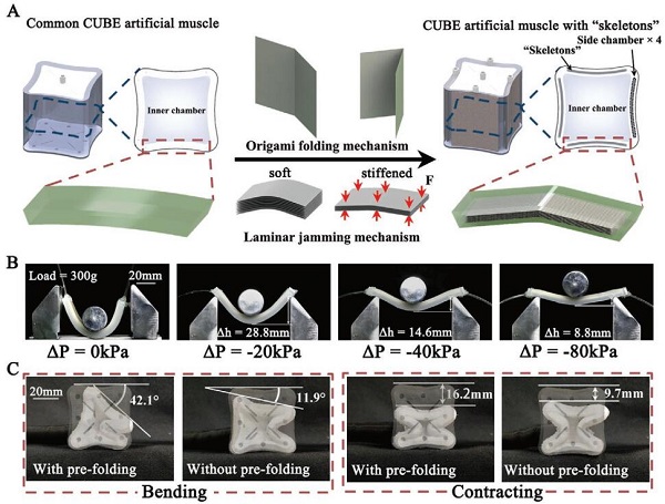 图一、可控制强度的折叠单元设计用于CUBE人工肌肉