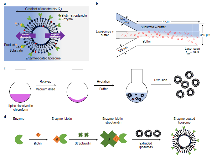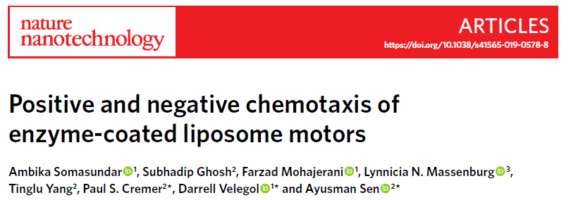 参考文献:Positive and negative chemotaxis of enzyme-coated liposome motors. Nature Nanotechnology, 2019, 14, 1129-1134.