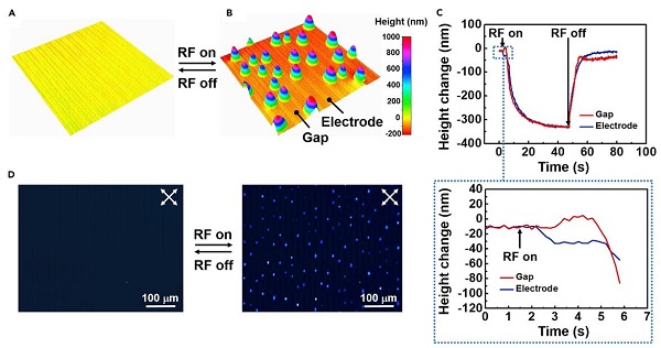 (C)通过打开和关闭电场来随时间变化不同位置的表面高度;
