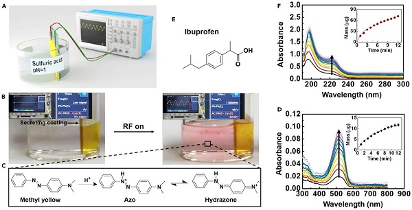 (A)活性染料从涂层中排入酸性环境的示意图;