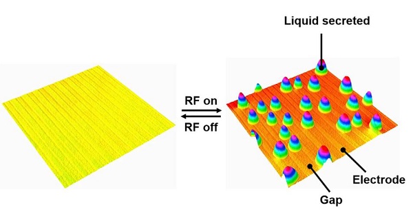 目前,在智能材料研究中部分致力于响应环境变化而耦合传感和驱动的材料。但是,为了使材料真正变得智能,还面临着材料与人类、器件或相互之间交换化学信息的挑战。此外,提供延长材料和器件寿命的机制,还将在机器人技术、虚拟现实和调整后的药物输送范围内提供通信和反馈机制。例如以哺乳动物的皮肤为启发,通过分泌化学物质改变其表面性质的涂层与环境相互作用,影响附着力、润湿性、温度或触摸体验。然而,大多数方法仅限于被动释放,很少报道通过触发释放与吸收再填充相结合的方式来管理体液。如今,主动分泌是由射频(RF)交变电场控制。频率范围为20 kHz-300 GHz的RF,包括无线电波和微波,是一种低能量、非电离的辐射。但是,材料科学家对射频在刺激响应性有机材料和软材料方面的潜力仍然知之甚少。