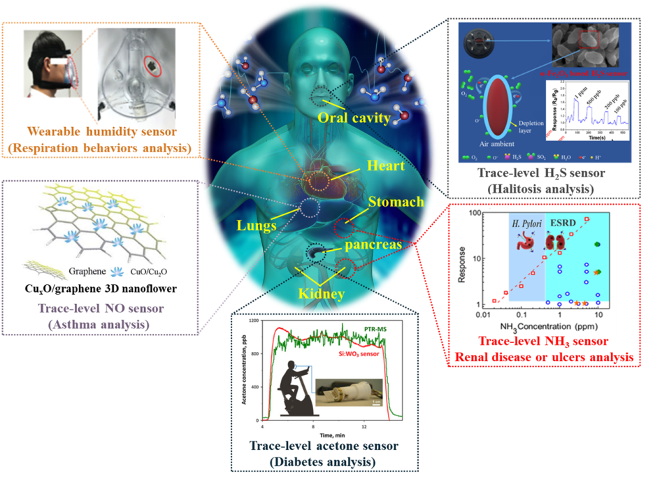 图1:基于气体/湿度传感器的无创疾病诊断示意图