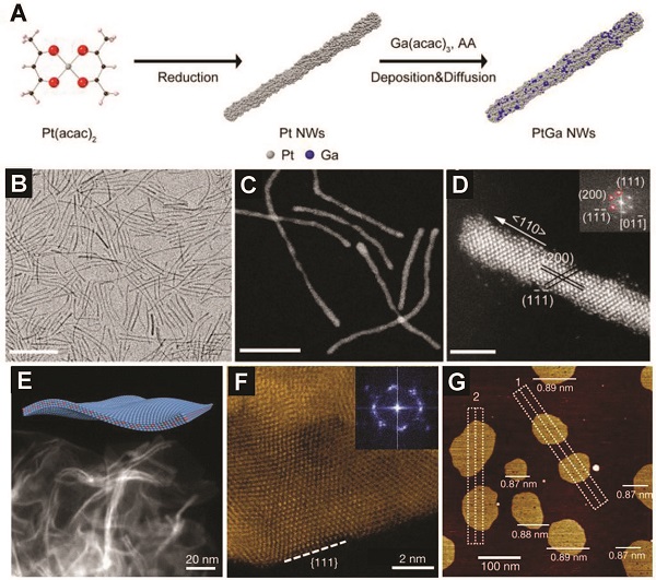 由于燃烧化石燃料带来了的日益严重的全球环境问题,这些问题迫切地促使着人们探索清洁和可再生能源替代品。燃料电池、水分解和二氧化碳减排等能源转换应用被认为是生产可再生能源的有效且环保的途径。特别是燃料电池以其无碳排放、工作温度低、能量转换效率高而被公认为最重要的发展方向。然而,燃料电池离不开清洁的燃料如氢气和液体燃料(甲酸、甲醇、乙醇等)。通过水分解获得的清洁氢气燃料被认为是实现未来氢气/空气燃料电池的有效途径,而二氧化碳还原是获得甲酸、甲醇等液体燃料的可再生途径。其中,最关键的是开发高效、高活性、高稳定性的能源转化相关反应催化剂。商用Pt/C纳米粒子(NPs)作为燃料电池反应(氧还原反应ORR、甲酸氧化反应FAOR、甲醇/乙醇氧化反应MOR/EOR)和水裂解反应(析氢反应HER)的基准,成本高、稳定性差。尤其是Pt-NPs在燃料电池相关反应中的迟滞动力学、甲醇耐受性和一氧化碳(CO)中毒,严重阻碍了其在工业上的应用。目前工业上使用的IrO2/RuO2析氧催化剂存在成本高、长期不稳定等缺点。综上所述,对于CO2还原反应,现有的催化剂大多局限于催化活性低、生产选择性差的情况,极大地限制了其实际应用。