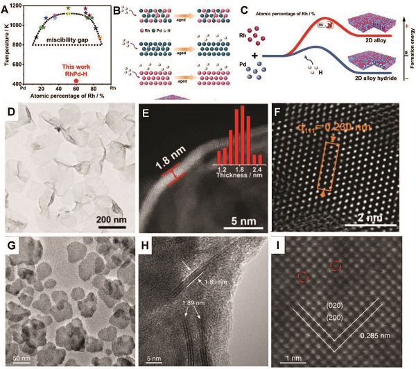 C)二维RhPd合金与氢化物合金的形成能比较;