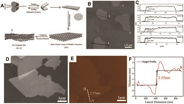A)多原子Al层及其与石墨烯杂化膜的结构;