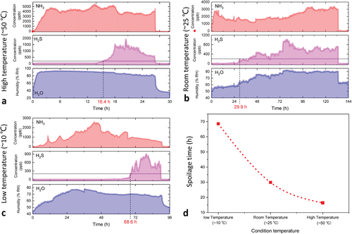 图5 测试系统对不同温度下的猪腹肉变质实时检测结果图